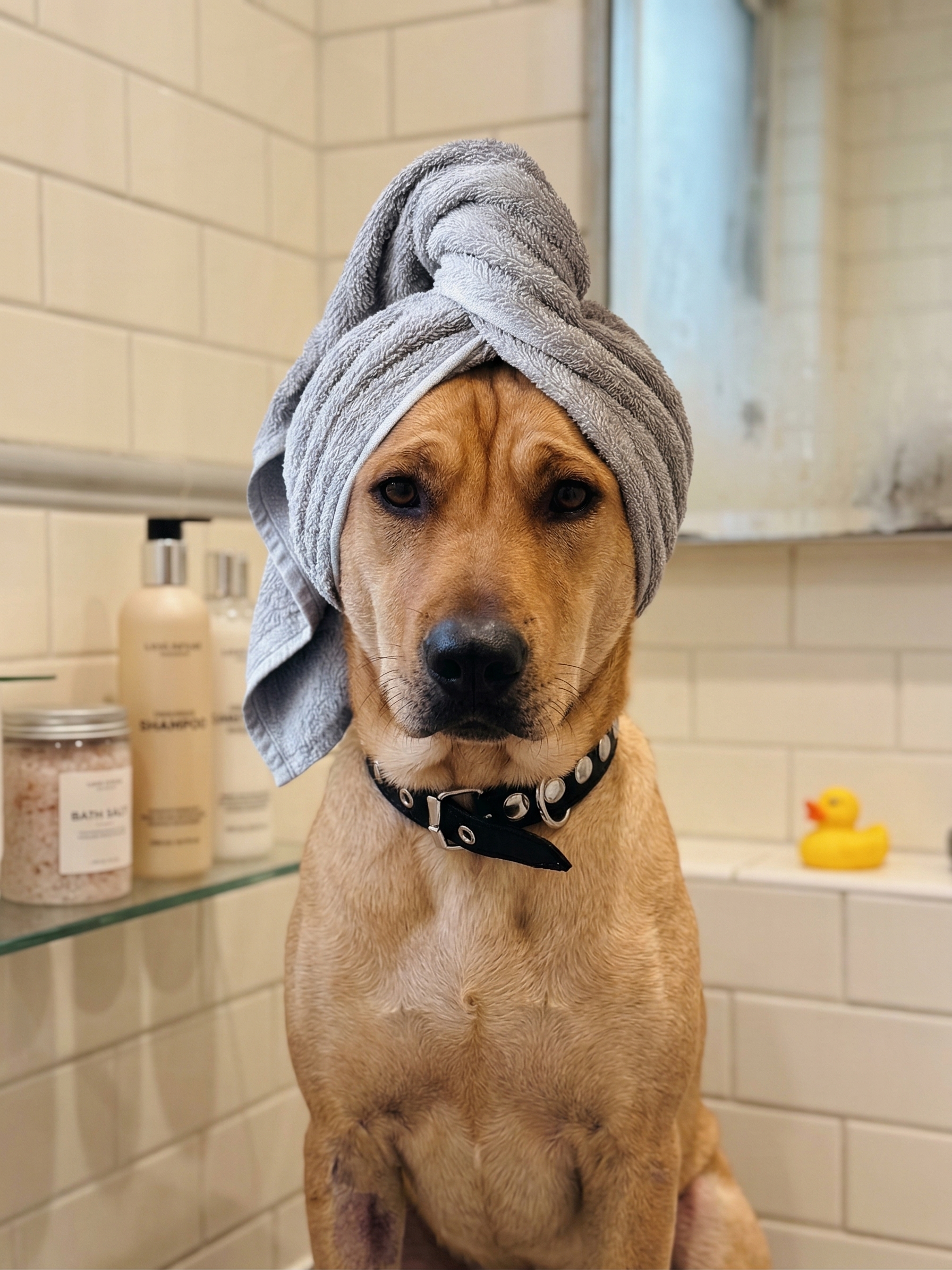 “Compré el set de 4 chiquitos para el baño. Quedaron increíbles. Mi perra Lola nunca se vio tan artística 😂”
